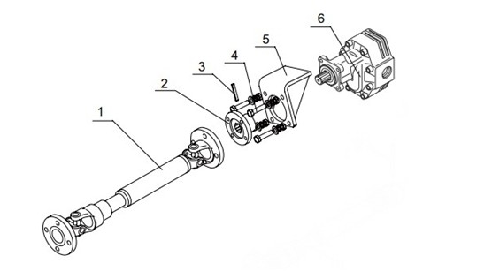 1、傳動軸 2、泵連接器 3、開口銷 4、螺栓 5、齒輪泵托架 6、齒輪泵如果傳動軸具有伸縮性時,泵連接器與齒輪泵花鍵軸間須用開口銷加以固定" />